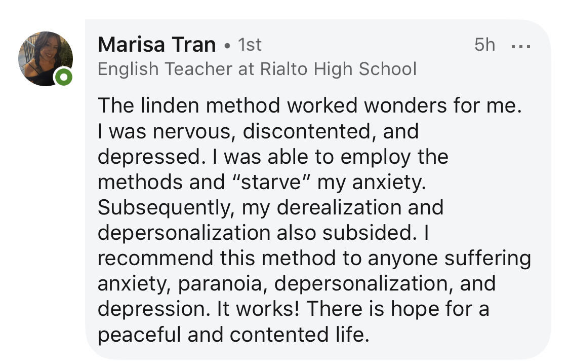 Charles is the lead educator, founder and developer of Linden Tree Education, LAR Recovery Practitioner accreditation and Anxiety Recovery Retreats. Over the past 24 years Charles has helped over 320,000 people from all over the world to recover from chronic anxiety disorders with unmatched results. Charles is recognized as the world's leading authority on anxiety disorder recovery.